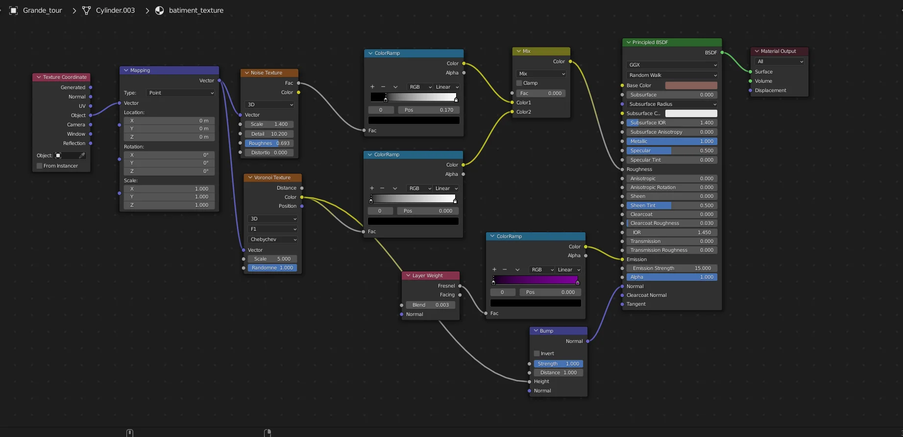 J’ai fait l’usage du "Shading" de Blender afin de créer des belles textures uniques qui harmonise avec l’ambiance que je recherchais.